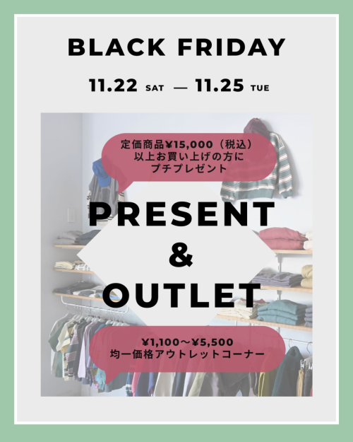 BLACK FRIDAY プチプレゼント&アウトレット企画をしております2025-11-23