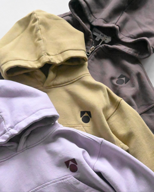 【main story】のフーディはシンプルなデザインだからこそ個性的な発色が引き立ちます